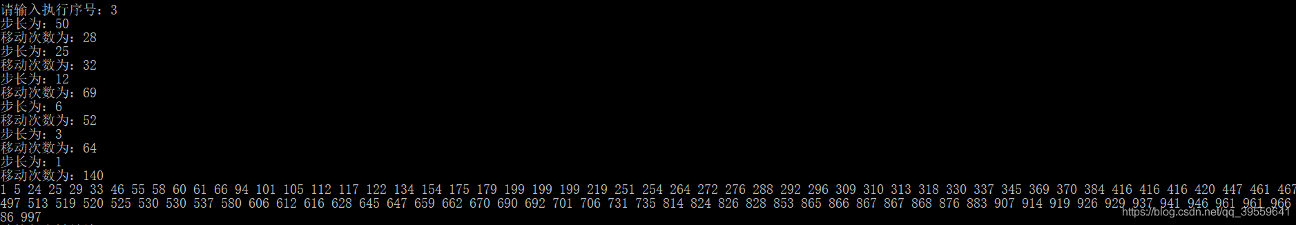 (3) 实现shell排序算法,并观察在采用不同的步长选取方法对排序过程中数据的比较和移动次数的影响。