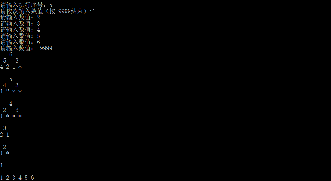 cout<<"5以二叉树形式动态演示堆排序算法的排序过程"<<endl;