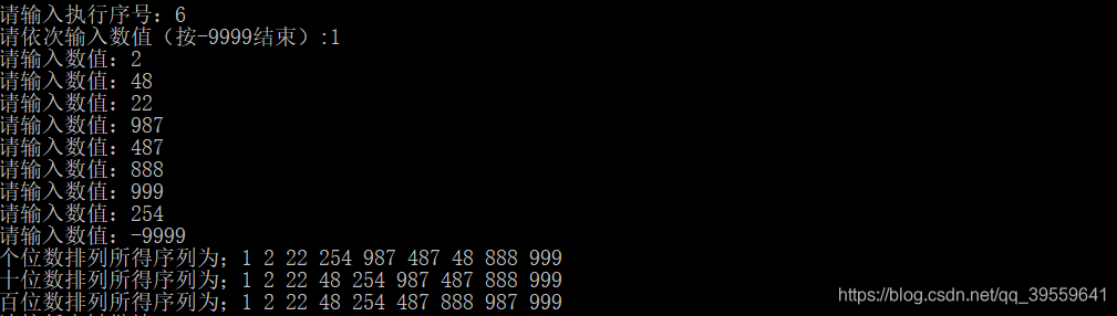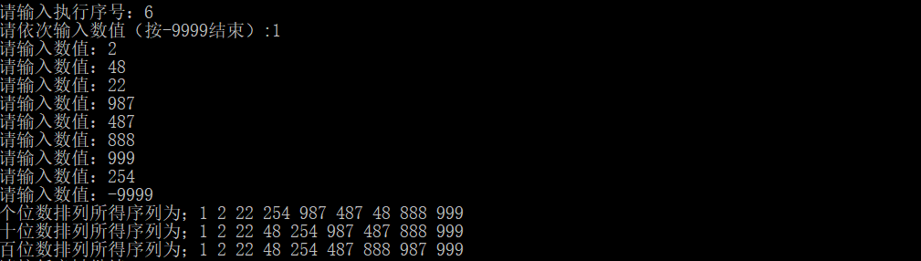 cout<<"6*链式基数排序对整数(最多为三位)的排序"<<endl;