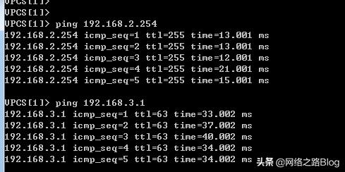 VPC1Ping 2的地址 192.168.3.1是没有问题的。Vpc2 Ping 1的地址也没任何问题。