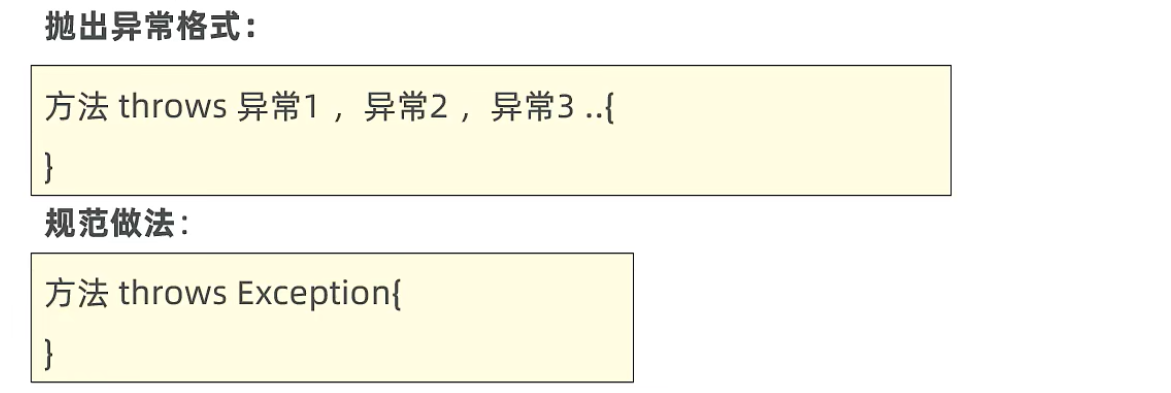 - throws:用在方法上,可以将方法内部出现的异常抛出去给本方法的调用者处理。