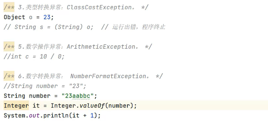 。比如:数组索引越界、空指针异常、日期格式化异常,等…