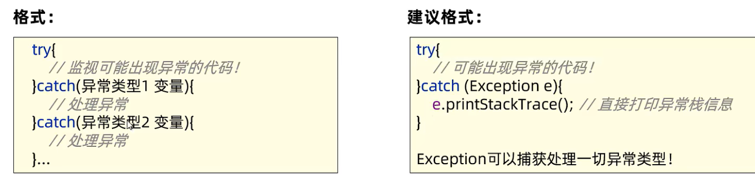 - 监视捕获异常,用在方法内部,可以将方法内部出现的异常直接捕获处理。