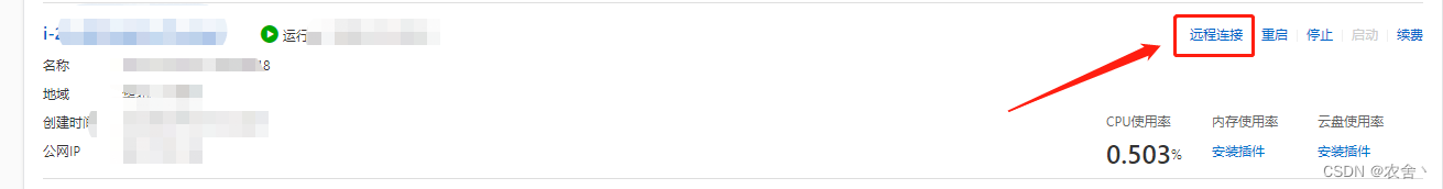 五、进入控制台找到对应服务器,点击 远程连接 按钮,进入终端
