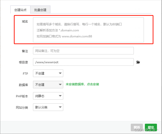 八、只填写刚刚解析的域名就可以,添加后直接提交