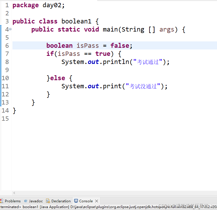 - boolean类型属于逻辑运算,一般用于程序流程控制。
