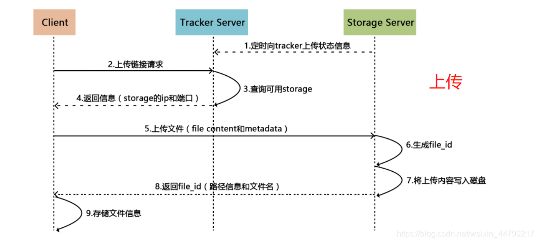 - FastDFS上传和下载流程 可以看出都涉及到一个数据叫文件索引(file_id)。