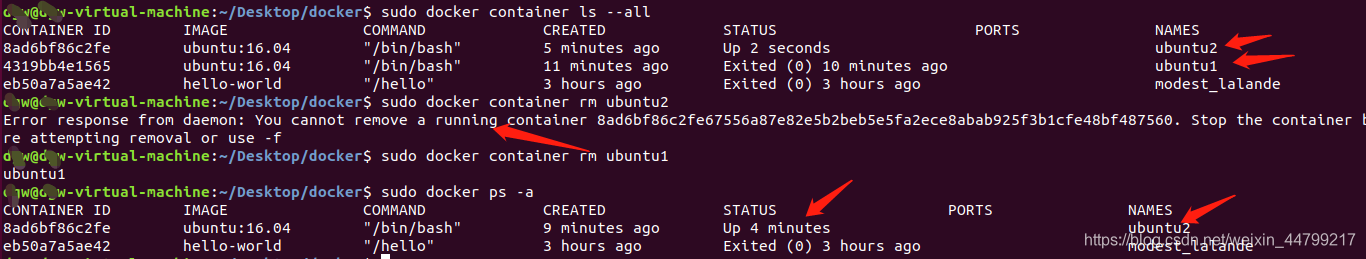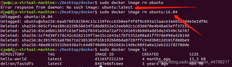 $ sudo docker image rm fce289e99eb9【删除的前提是:这个对象没有创建容器。镜像正在运行时是不能删除的】