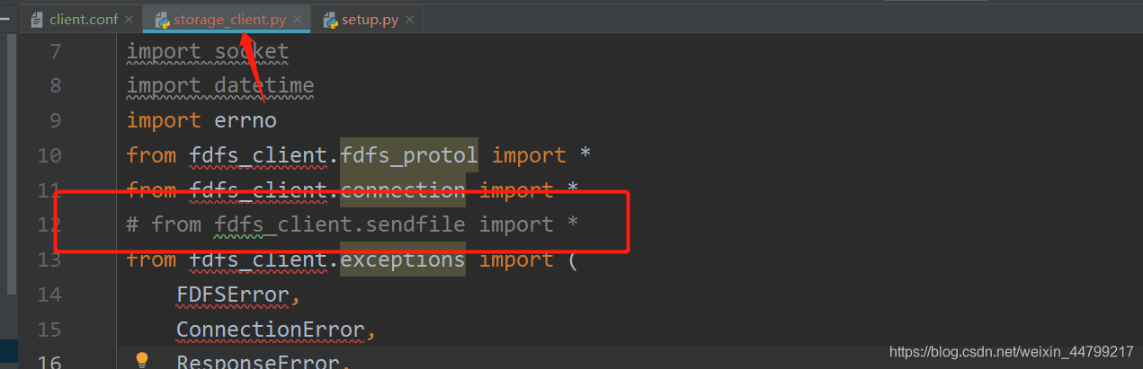 1. 解压进入fdfs_client-py-master\fdfs_client 目录下的storage_client.py注释from fdfs_client.sendfile import *