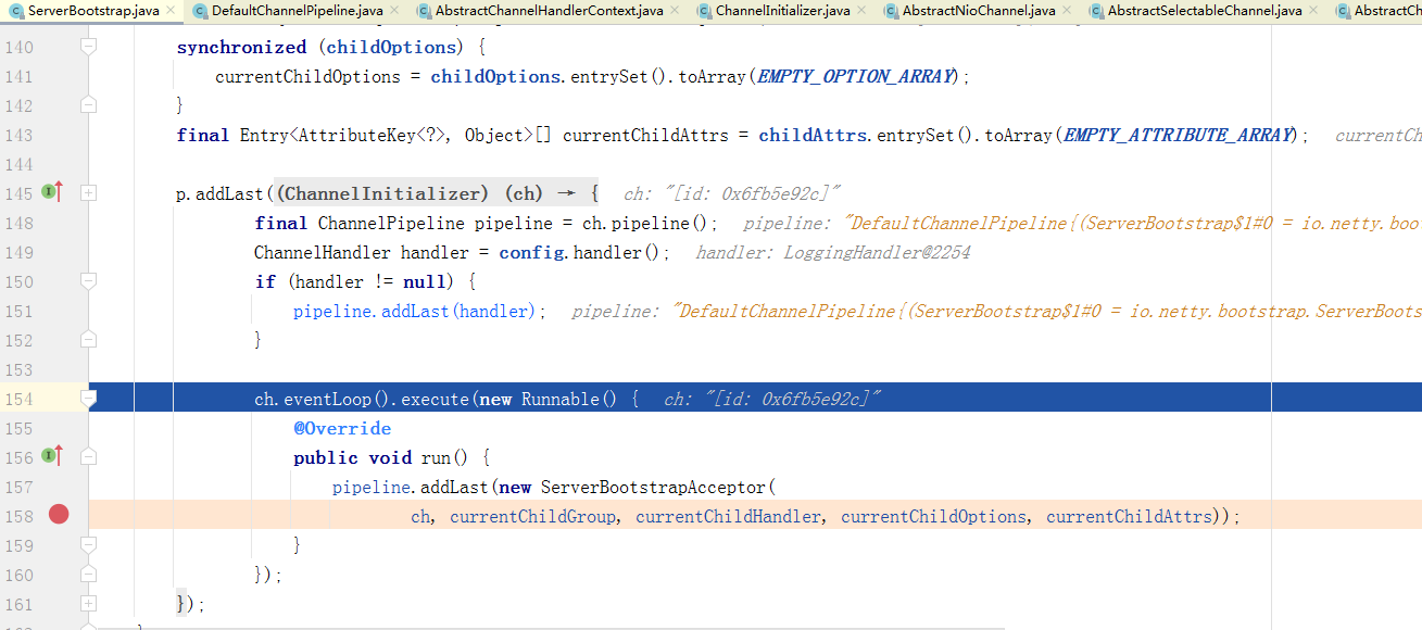 pipeline.addLast(new ChannelHandler[]{new ServerBootstrap.ServerBootstrapAcceptor(ch, currentChildGroup, currentChildHandler, currentChildOptions, currentChildAttrs)});