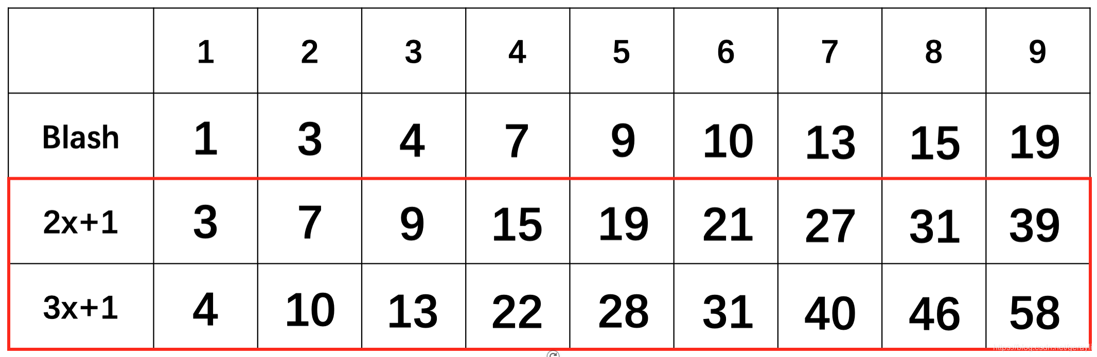 实际上,q2、q3中的元素都来自于q1,只要维护two、three两个位置,表示q2中的下一个数由q1[two]*2+1得到,q3中的下一个数由q1[three]*3+1得到,这样就不需要q2、q3这两个数组了。