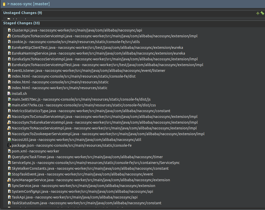 为了实现双向增量同步的功能,修改的文件还蛮多的: