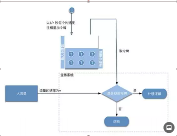 系统会以 一 定的速度生成令牌,并将其放置到令牌桶中,可以将令牌桶想象成 一 个缓冲区(可以用队列 这种数据结构来实现),当缓冲区填满的时候,新生成的令牌会被扔掉。
