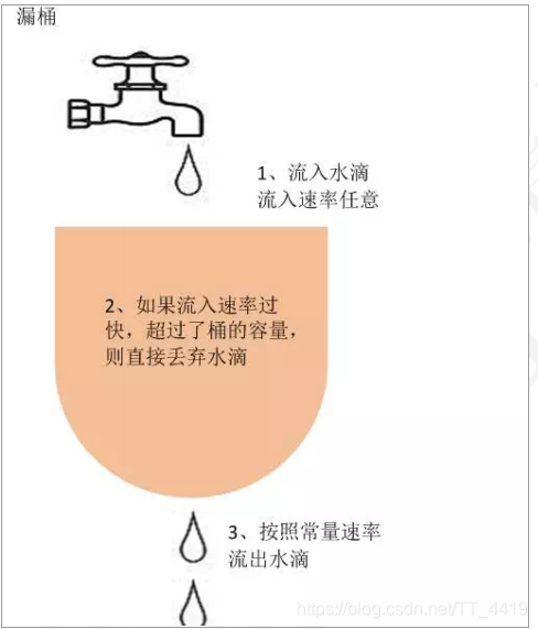 漏桶算法思路是,不断的往桶里面注水,无论注水的速度是大还是小,水都是按固定的速率往外漏水; 如果桶满了,水会溢出;