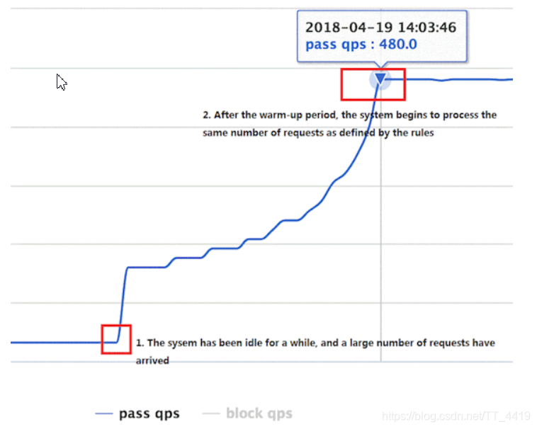 通常冷启动的过程系统允许通过的 QPS 曲线如下图所示: