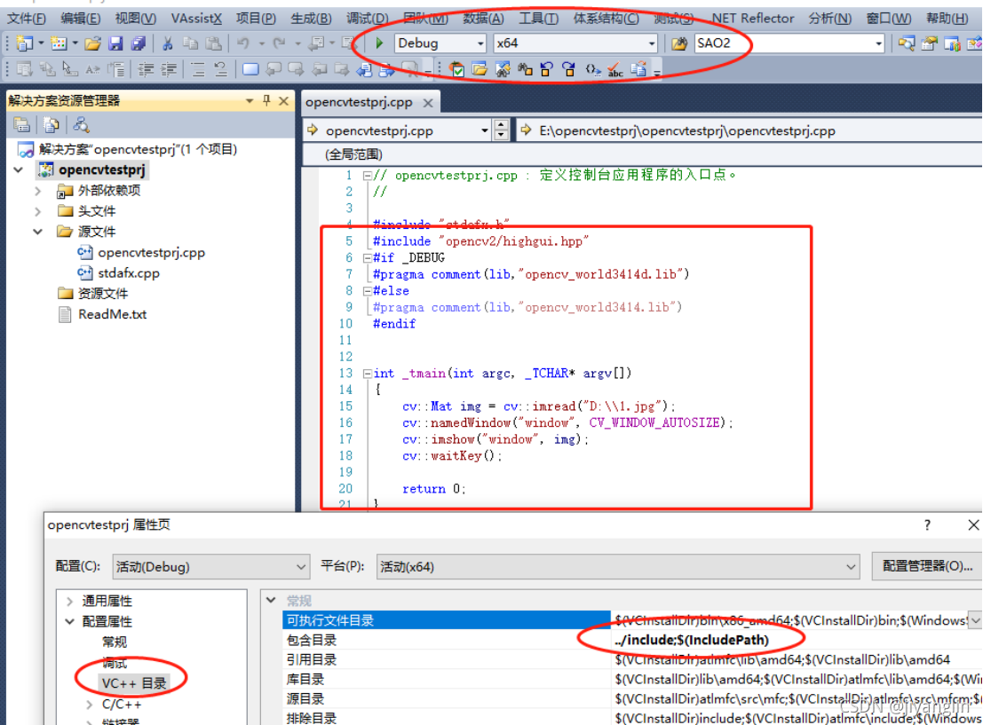 配置工程属性(include这块我就展示了debug,release的也需要同样配置),然后写代码。