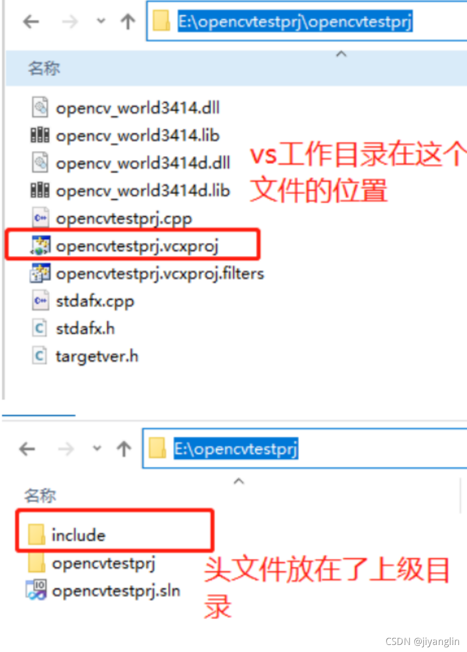 头文件我们配置的是../include。这么配置是因为VS运行工作目录是.vcxproj那一级,而我们把头文件放在了sln这一级,所以就是../。