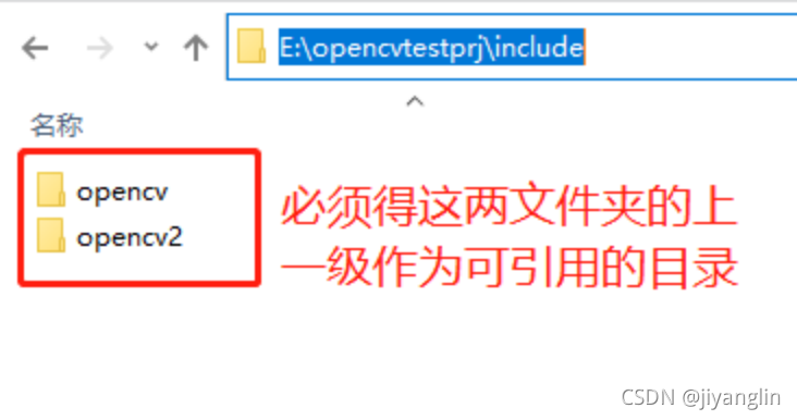 当然这里配置方法很多,也可以直接选择绝对路径。重点就是得包含目录到opencv目录的上一级,因为内部的头文件有相对路径的引用,所以这里必须得这么整。