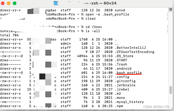 输入ls -all 查看文件夹下是否有.bash_profile文件