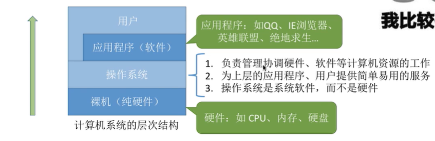 概念:控制和管理软件和硬件资源,合理组织、调度计算机工作与资源分配,为用户和其他软件提供方便的接口和环境,是计算机系统最基本的系统软件。
