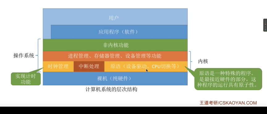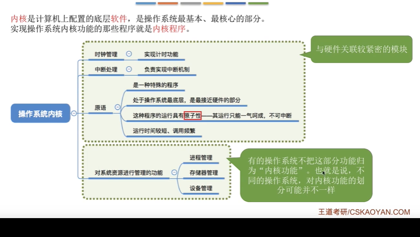 1)与硬件紧密关联的模块:时钟管理、中断处理、原语。