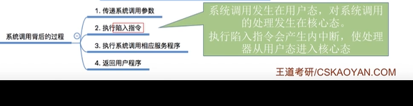 系统调用会通过陷入指令使处理器从用户态进入核心态。