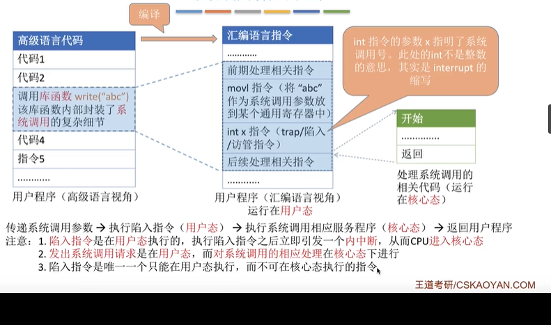 1)库函数(如:write("abc"))封装了系统调用的复杂细节。