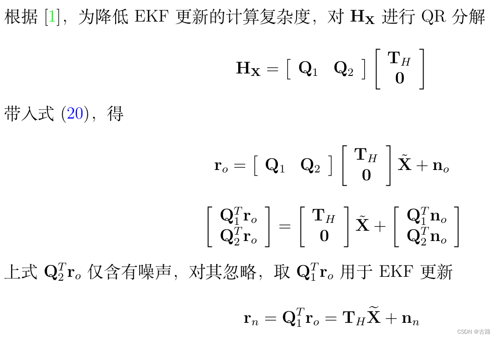 进行相机状态边缘化后,继续对方程进行QR分解,将误差状态量中关于多帧相机的状态量进行压缩: