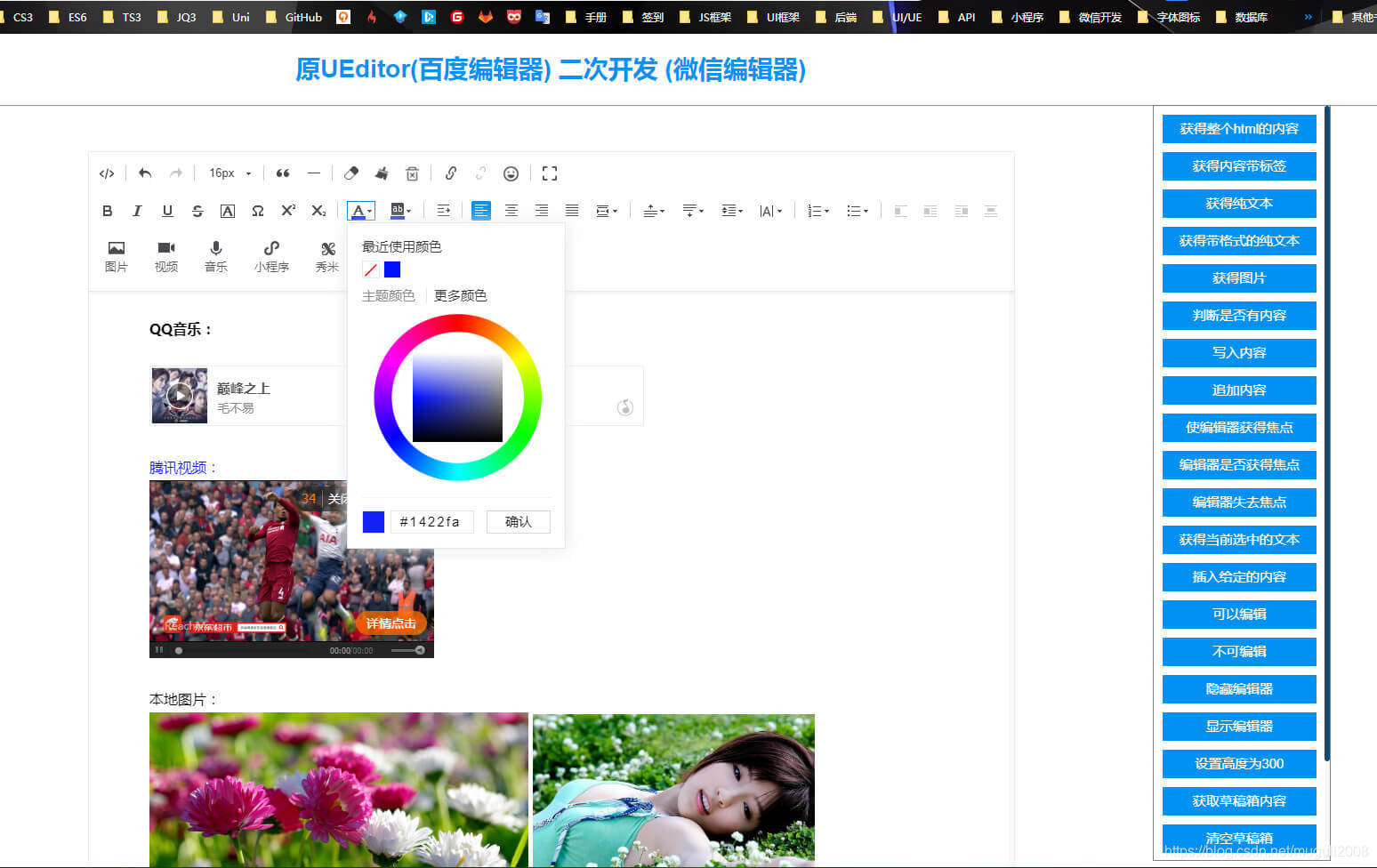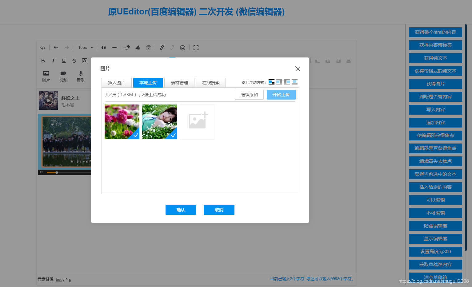 我对原UEditor(百度编辑器,PHP1.4.3版)进行了二次开发,新增了一功实用功能 和 修改部分UI界面, 类似 (微信编辑器,微信公众号,图文发布在线编辑器) ,有需要的小伙伴可以参考一下: