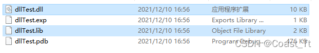 2.将上述生成的dllTest.dll和dllTest.lib库文件,还有定义库函数的头文件dllTest.h放置在工程目录下。