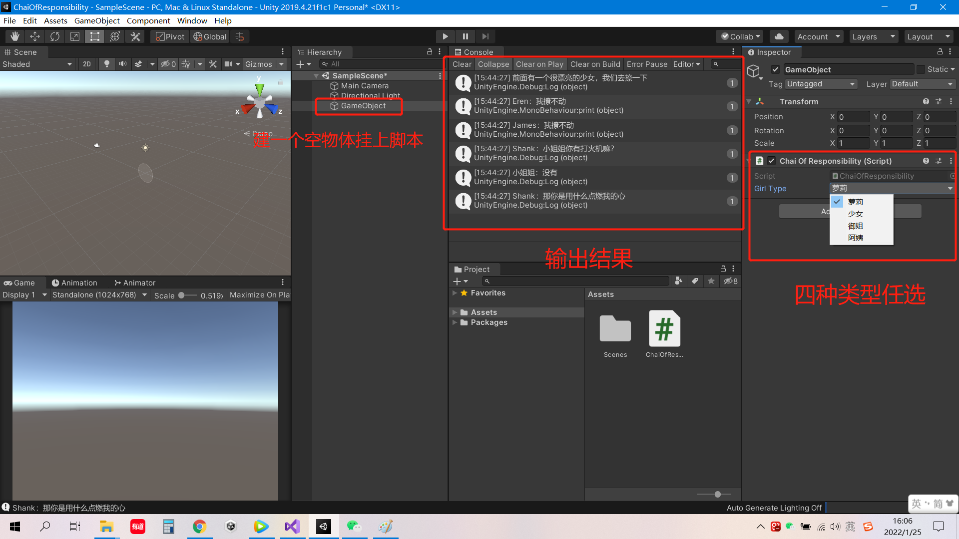 Debug.Log($"前面有一个很漂亮的{girlType},我们去撩一下");