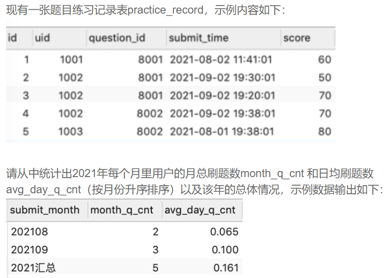 SELECT COALESCE(DATE_FORMAT(submit_time, '%Y%m'), '2021汇总') AS submit_month,
