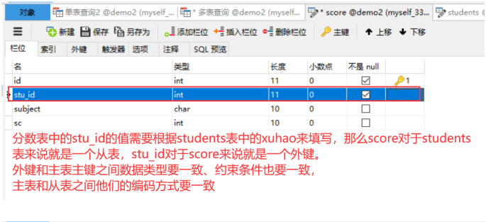 7 SELECT stu_id,name,SUBJECT,sc from score,students