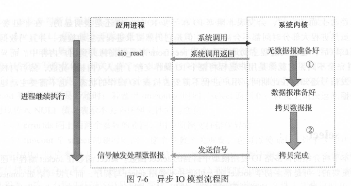 同步IO与异步IO的区别就在于同步IO 进行IO 操作时会阻塞进程。按照这个定义,之前所述的阻塞IO 、非阻塞IO 及多路IO 复用都属于同步IO 。实际上,真实的IO操作,就是例子中的recvfrom 这个系统调用。非阻塞IO 在执行recvfrom 这个系统调用的时候,如果内核的数据没有准备好,这时候不会阻塞进程。但是当内核中数据准备好时,recvfrom 会将数据从内核拷贝到用户内存中,这个时候进程则被阻塞。而异步IO 则不一样,当进程发起IO 操作之后,就直接返回,直到内核发送一个信号,告诉进程IO 已完成,则在这整个过程中,进程完全没有被阻塞。