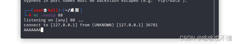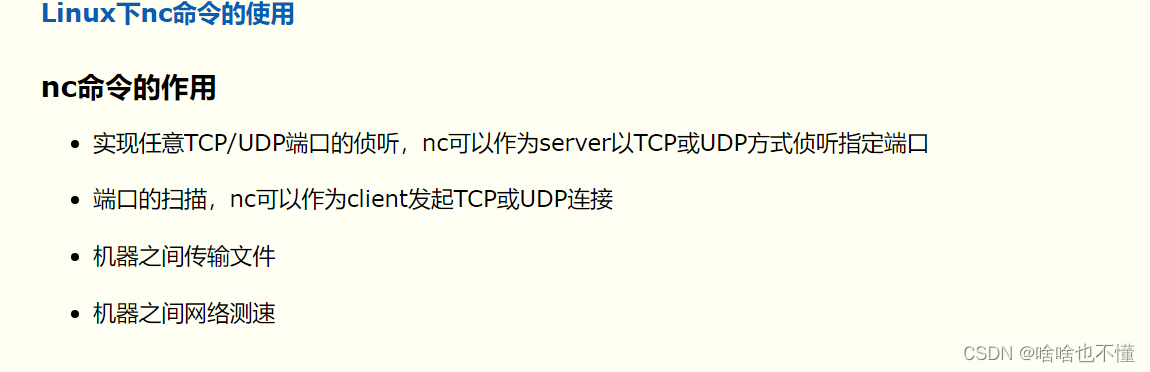 nc -uvlp(u:udp,v:显示运行过程,l:使用监听模式,监管传入资料,p:设置通信端口)