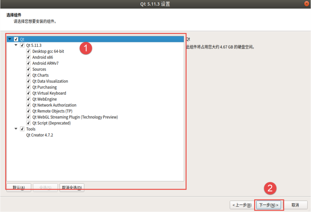 ./qt-opensource-linux-x64-5.11.3.run注:如果命令之前加sudo,qt则安装至根目录的opt目录下。