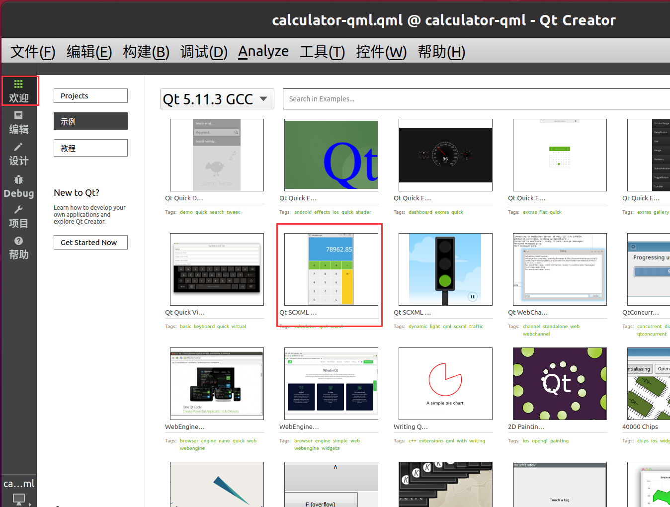 欢迎页有很多示例,随意打开其中一个