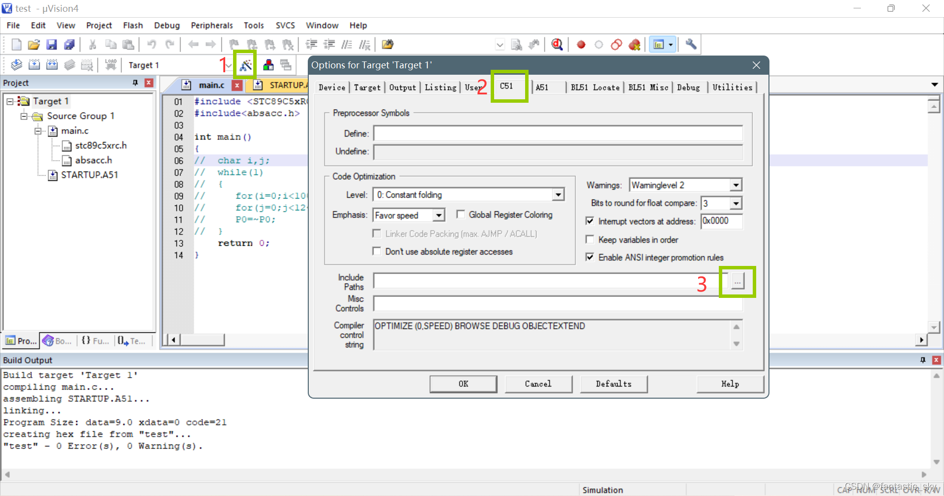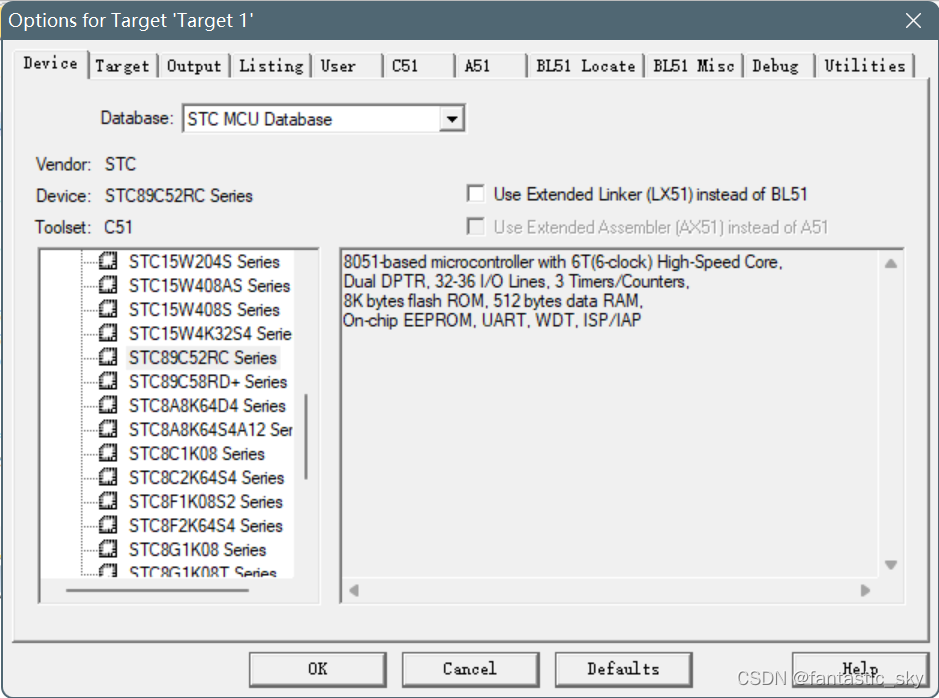 当然,由于都使用了8051指令系统,单片机型号选择为AT89C52也可以编译,但是STC多出的部分特殊功能寄存器无法直接使用(头文件未声明部分寄存器),需要自行使用SFR声明。