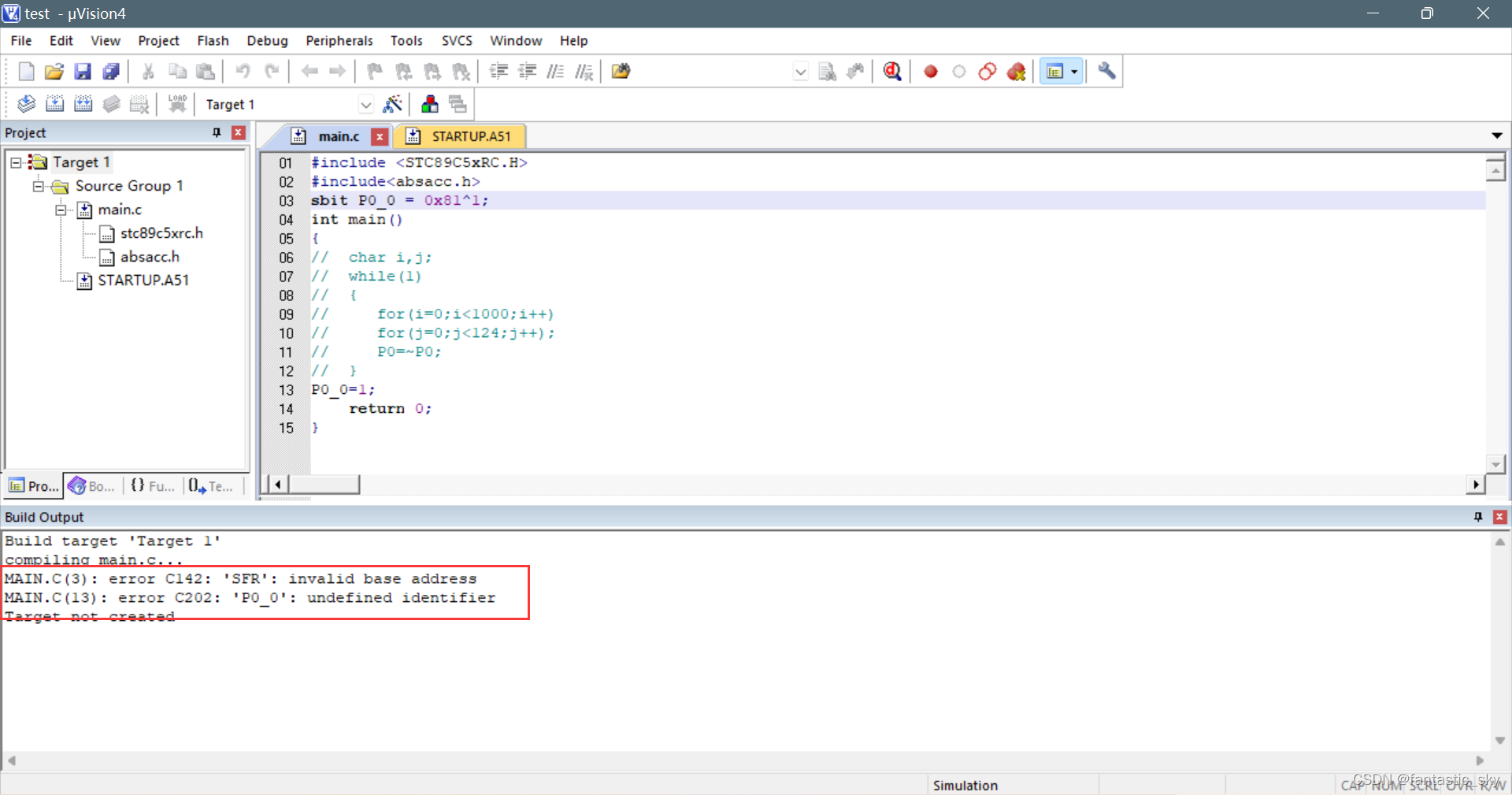 C语言:bit P0_0; P0_0=1;//为了演示效果,变量特意重名