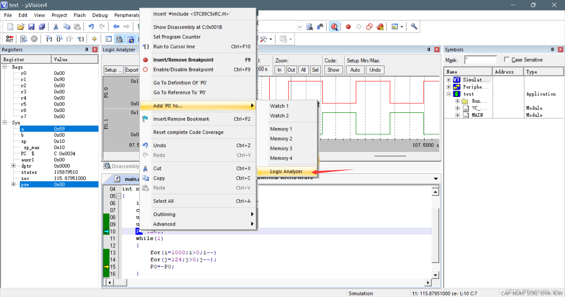 二十一、Keil C51中可以观察引脚电平的变化嘛?