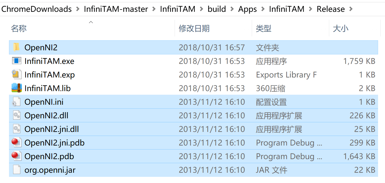 配置这个infiniTAM用了大概半天的时间(win 10),需要的软件以及包如下: