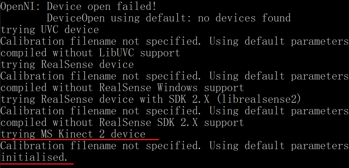 下载下来的 OpenNI 的32位安装包之间安装在默认位置就行,按照这个 http://www.wfuyu.com/technology/26874.html 教程把\OpenNI2-kinect2\Bin\x64-Debug\OpenNI2\Drivers中的 Kinect2.dll,Kinect.lib 等文件拷贝到OpenNI2安装目录\OpenNI2\Tools\OpenNI2\Drivers下。这样才能找到Kinect 2.0。在小娜里搜索 “NiViewer”,运行,应该有类似下边的界面,如果没有,显示的是 “no devices found”,可以多试两次,如果一直不行,说明没有配好,驱动不了kinect 2.0。