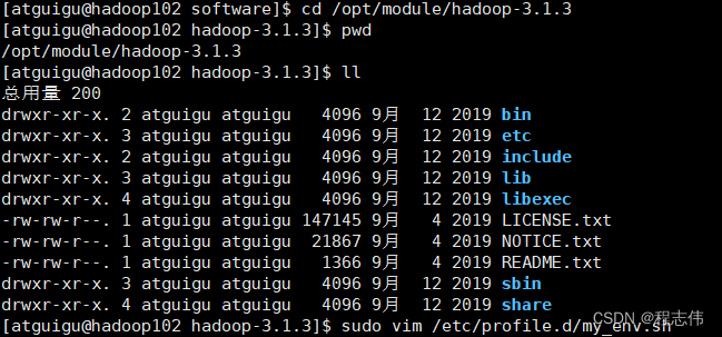 进入到解压之后的hadoop目录(pwd)