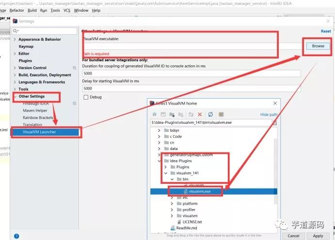 配置 excutable===》选择到客户端的 bin 目录的 visualvm.exe 文件