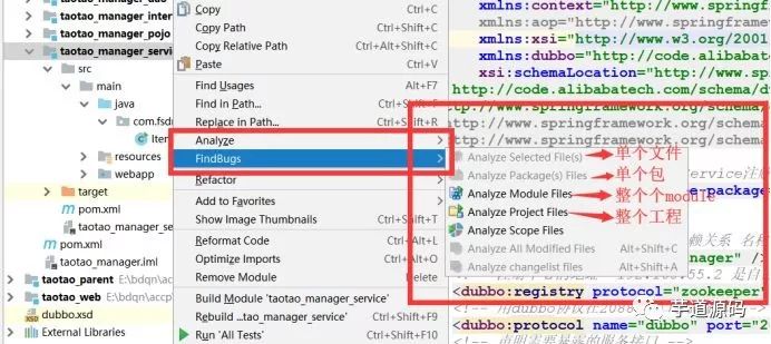 使用:右键单击(module、单个文件等)—> 在快捷菜单中选择 findbugs 即可
