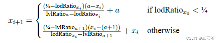 - 在lvlRatioa和lvlRationa+1的值之间进行线性插值,以确定y=¼时的x0值: