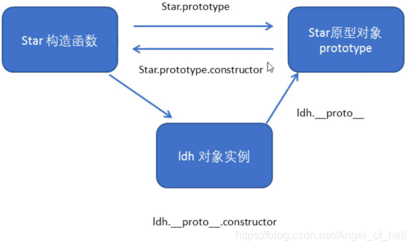 每一个构造函数都存在一个属性prototype,他也是一个对象,其中存储一些公共方法和属性,即表示存储这个类的一些特征,而实例对象(我们使用中定义的对象)通过构造函数实例化,为了表示他是由哪个类所创建,于是在生成实例对象的时候,会把prototype完全复制到实例对象中,形成__proto__这个属性,两者一模一样,且栈中的地址相同,修改其中一个的属性,另一个会相应变化。而prototype中又有一个属性constructor,他表示类的本身,也就是构造函数本身,所以这三者会形成一种链式结构————————原型链。