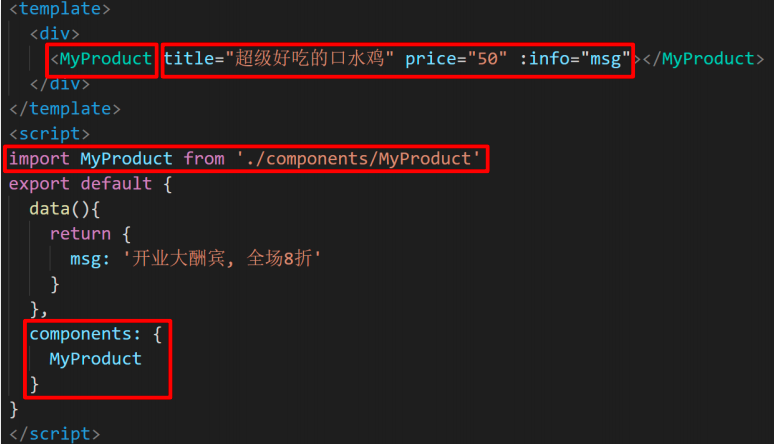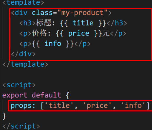 父向子传值:在父组件中的template里使用时,通过属性名="值"的形式传给子组件