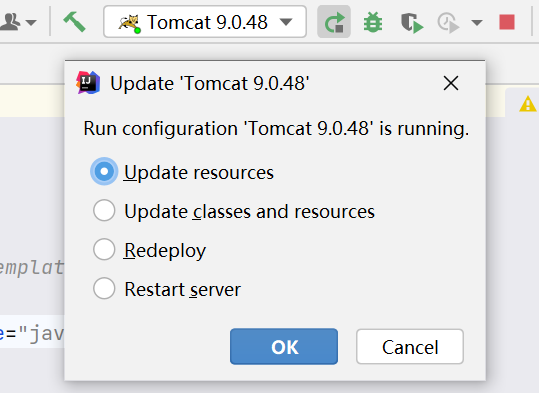 提示:再次运行时,只需要点击箭头选择第一个即可(第一个表示只更新前台的代码、第二个表示更新前后台的代码 ),点击ok