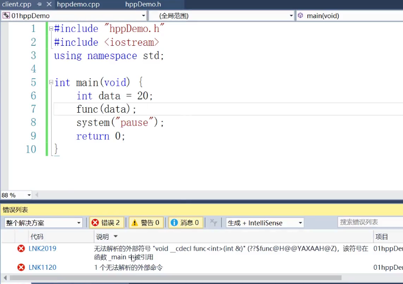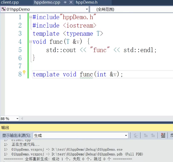 所以出现了.hpp文件,将.h的声明与.cpp的定义混合放到.hpp文件中